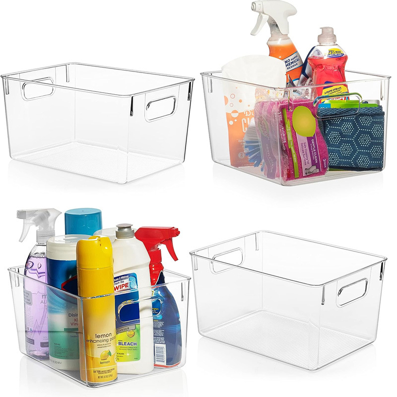 Made of durable and clear BPA and Chlorine free shatter-resistant plastic. They are food safe and can be cleaned easily with mild soap and water. Built-in, easy-grip side handles make it easy to transport from place to place. These plastic storage bins are perfect for pantry organization and storage or kitchen organization. These clear storage bins are great for anywhere in your home.