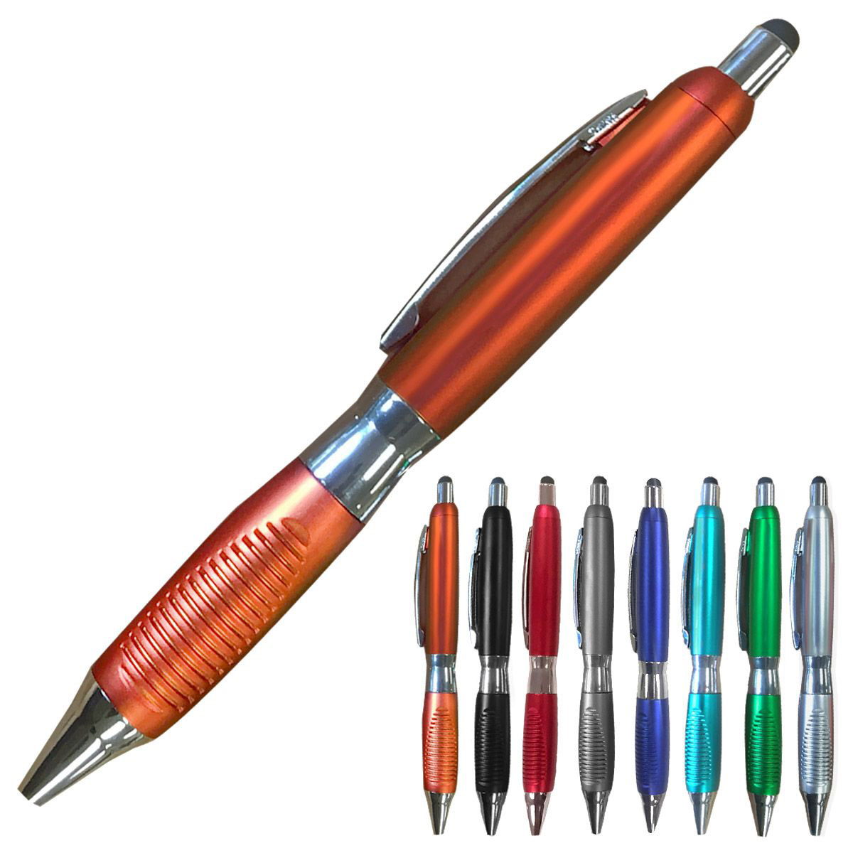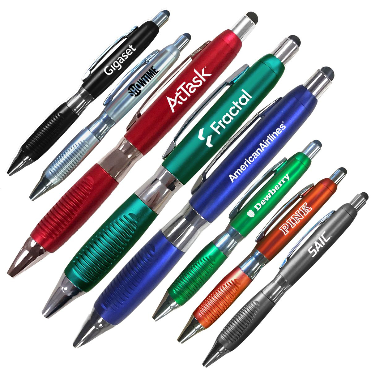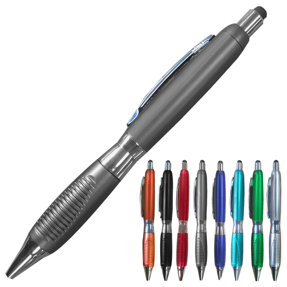 This elegant ballpoint pen with comfort grip and stylus is available in a variety of fashionable colors. Perfect for trade shows, sales visits and everyday office use. Writes in black ink.