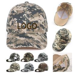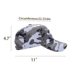 It is made of polyester and has a lightweight and airy design with a protective bill top button, ventilation holes, and an adjustable closure. Hide out in plain sight when you slip on these cool camouflage baseball caps for your next camping trip, hike, or other outdoor activity or adventure. Available in a range of great camouflage colors and styles, including the latest block-style camo looks. Add your company logo or message to customize. Circumference:22-23.6in.